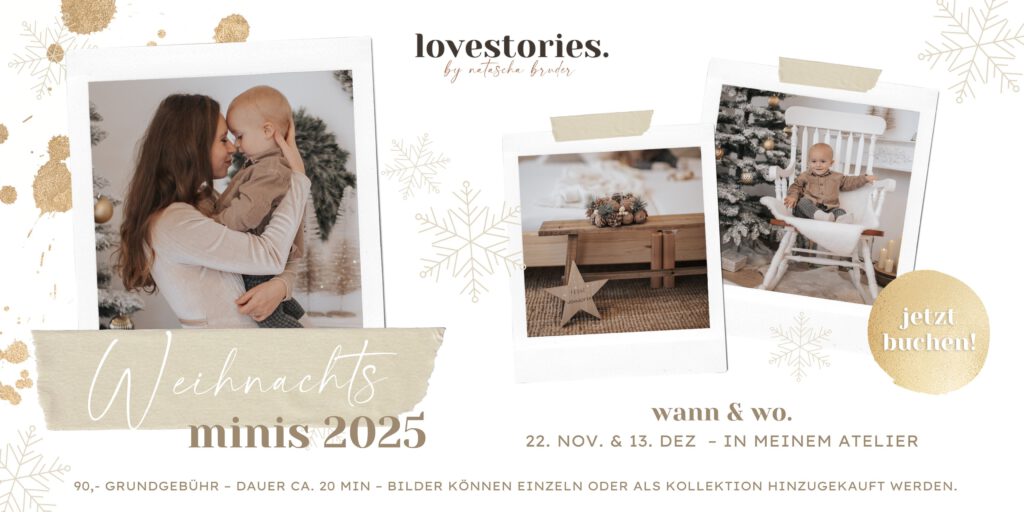 Weihnachten steht quasi vor der Tür und auch in meinem Atelier in Schriesheim läuten die Weihnachtsglocken mit 3 tollen weihnachtlichen Sets. Ein Set wird neutral bleiben, so dass ihr auch auf Wunsch neutrale Familien- oder Paarbilder fürs ganze Jahr bekommt. Mein Ziel ist es, bei euch an diesen drei Tagen Weihnachtstimmung hervor zu rufen – es wird Plätzchenduft in der Luft liegen und weihnachtliche Musik laufen. Und ganz nebenbei werden wunderschöne Erinnerungen von euch und von euren Liebsten entstehen.